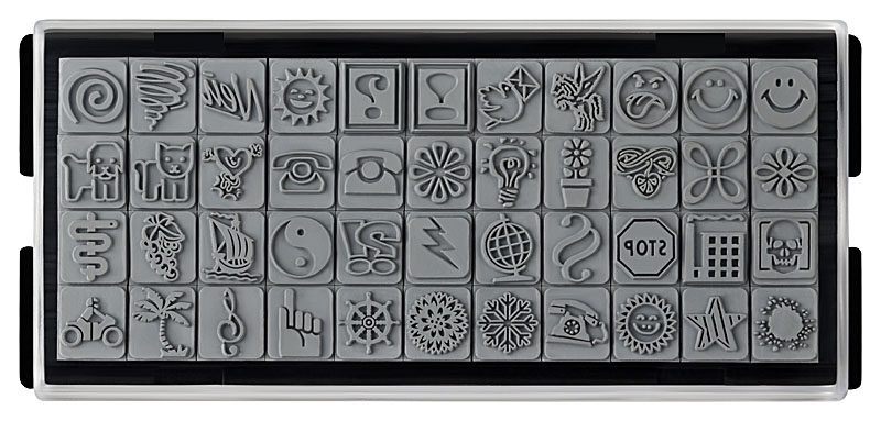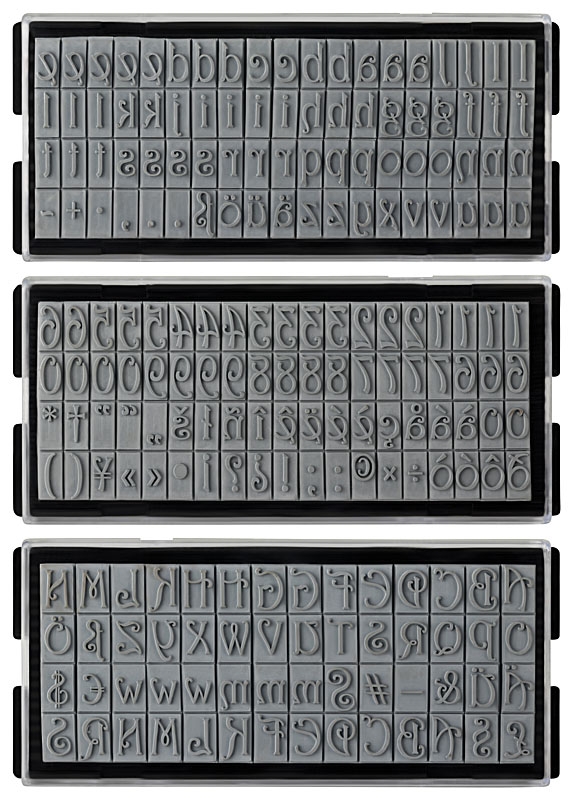 stieber® ZIERSCHRIFT-Stempelset zum Selbersetzen, 5 Zeilen: 6 Typensätze, 2 Kissen, Stempelunterlage