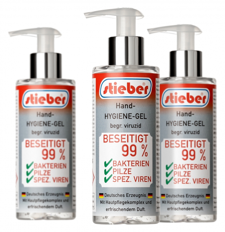 Das Hand-Hygiene-Gel von stieber® ist optimal geeignet, um die Hände hygienisch sauber zu reinigen, es wird ohne Wasser und Seife angewendet. Begrenzt viruzid "plus" sowie antibakteriell ist das Wirkspektrum besonders breit und zuverlässig eingestellt. Es verleiht ein frisches, gepflegtes Hautgefühl durch den wissenschaftlich bestätigten Hautpflegekomplex, der spezielle mild rückfettende, schützende Inhaltsstoffe, u. a. Aloe-Vera-Extrakt und Antioxidantien, enthält. Dadurch ist der extrem hohe Alkoholgehalt gut hautverträglich. ANWENDUNG: Mindestens 2 ml in den Handflächen, sowie auf den Fingern, insbesondere den Fingerkuppen, bis zum Trocknen verreiben (ca. 30 Sekunden). WICHTIG ZU BEACHTEN: Nur bei Bedarf, nicht öfter als fünf Mal täglich anwenden. Nicht zur chirurgischen Händedesinfektion geeignet.