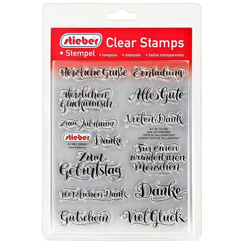 CS-828 stieber® Clear Stamp Transparentes Stempel Set "Texte 03 Kalligrafisch - German Texts 03 Calligraphic"