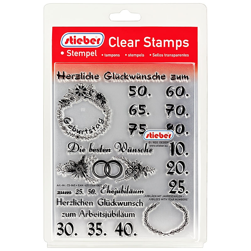CS-845 stieber® Clear Stamp Transparentes Stempel Set "Jubiläen mit Jahreszahlen - Jubilees with Year Numbers"