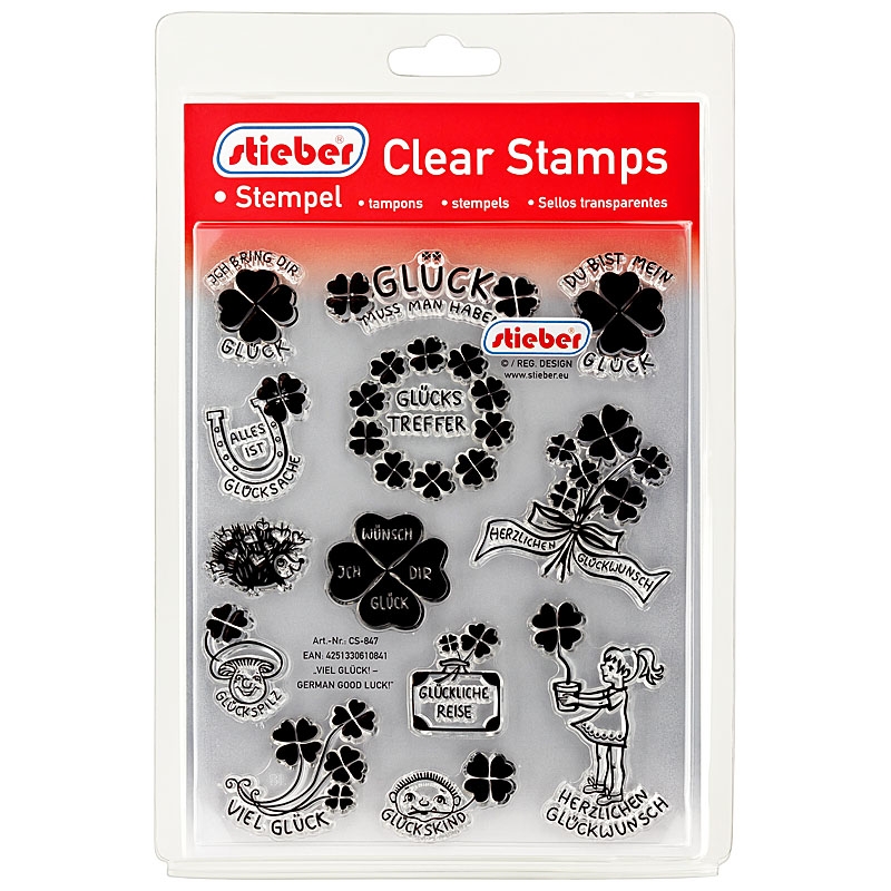 CS-847 stieber® Clear Stamp Transparentes Stempel Set "Viel Glück! - German Good Luck!"