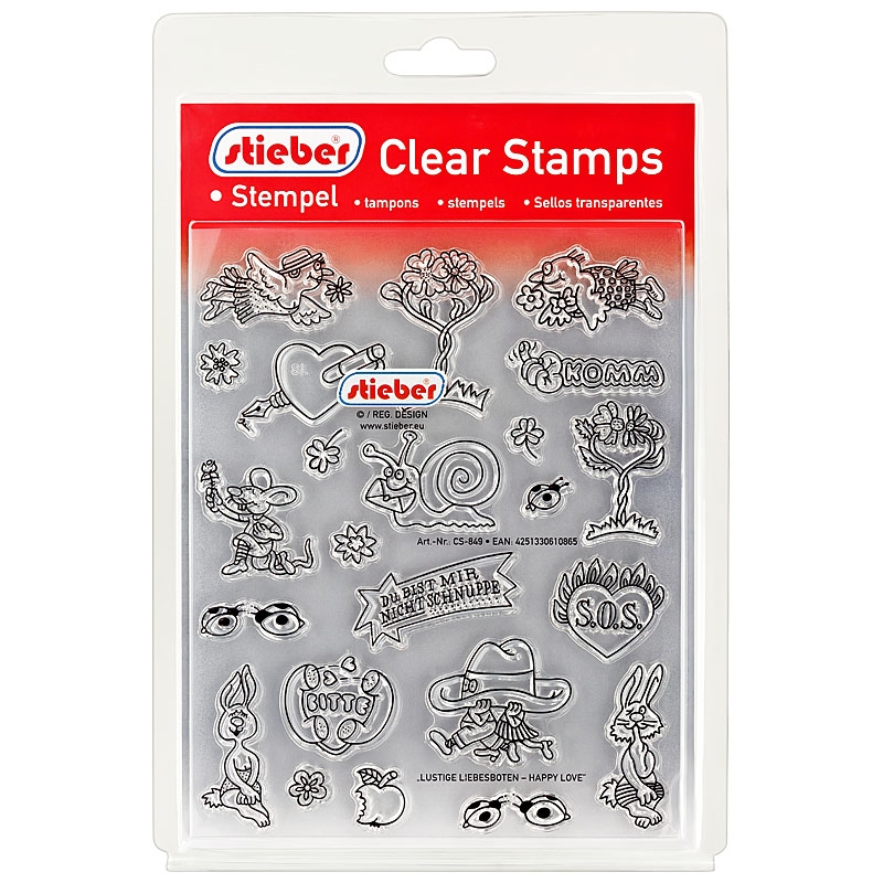 CS-849 stieber® Clear Stamp Transparentes Stempel Set "lustige Liebesboten - Happy Love"