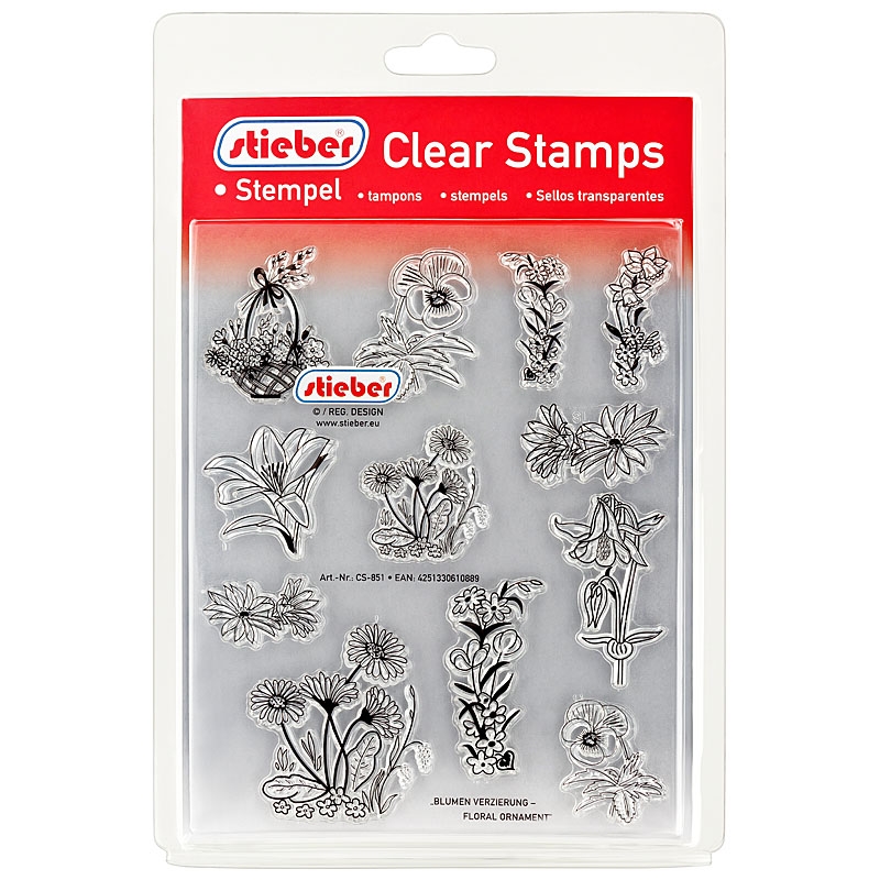 CS-851 stieber® Clear Stamp Transparentes Stempel Set "Blumen Verzierung - Floral Ornament"