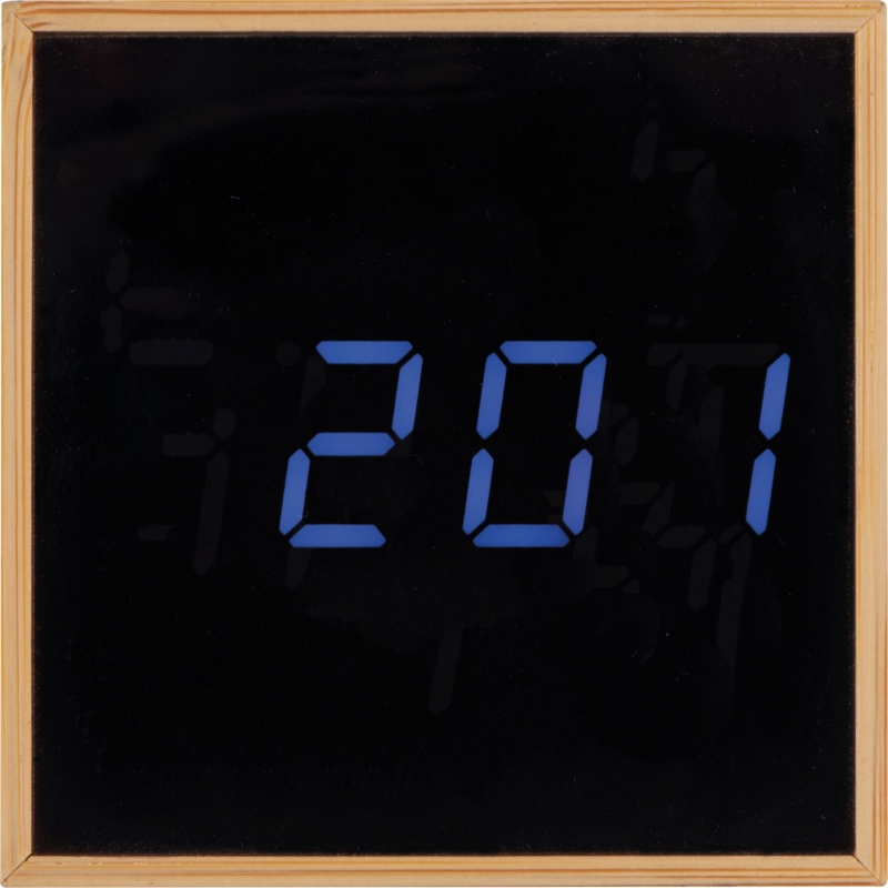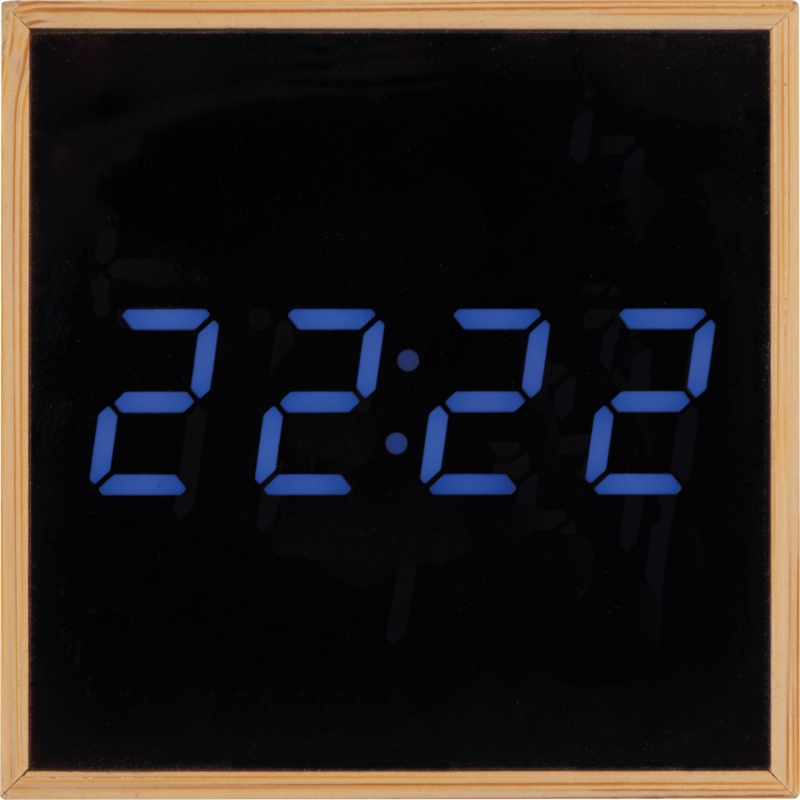 Tischuhr mit schwarzem Display und blauer LED Anzeige